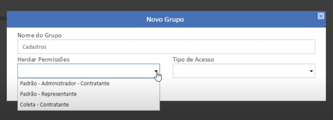 Este processo tem como objetivo demonstrar como realizar cadastro de grupo de acesso para configurar permissões de acesso ao usuário.