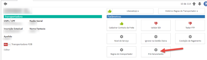 ⚠️ Importante: É necessário que o pré-faturamento tenha sido configurado previamente em pelo menos uma transportadora.