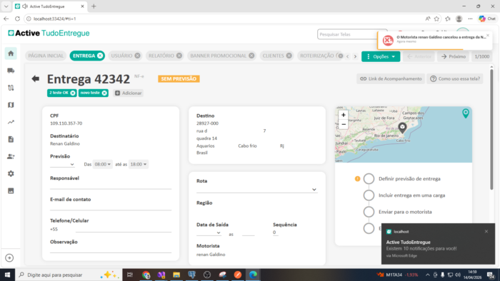 Você não precisa ser reativo aos problemas, com o Active TudoEntregue os alertas chegam para você em tempo real.