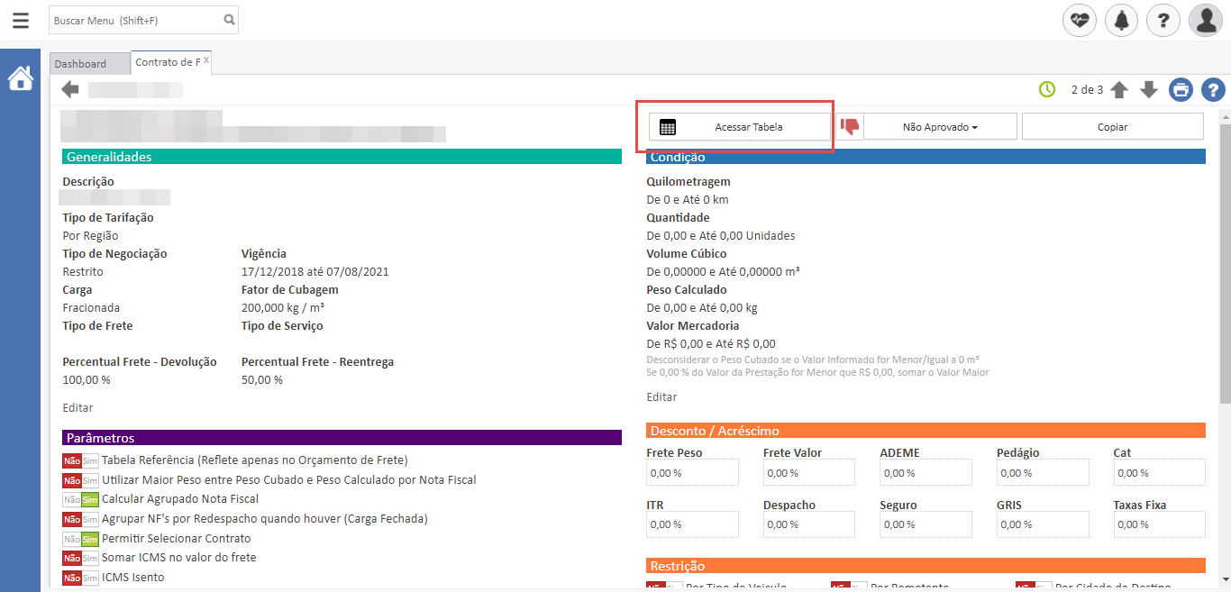 - Localize o contrato gerado para a tabela e clique em “Acessar Tabela”;