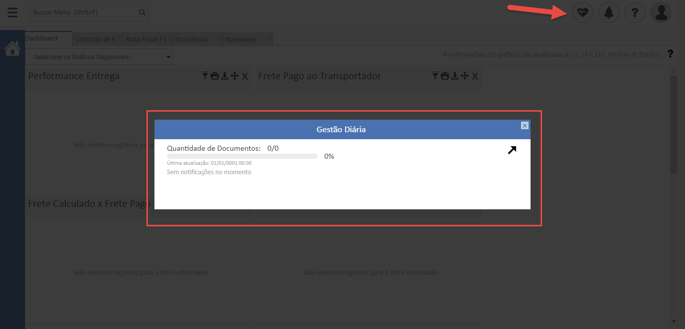 Você também pode acompanhar a quantidade de Notas Fiscais utilizadas no mês, clicando em “Gestão Diária” no ícone representado por um coração:
