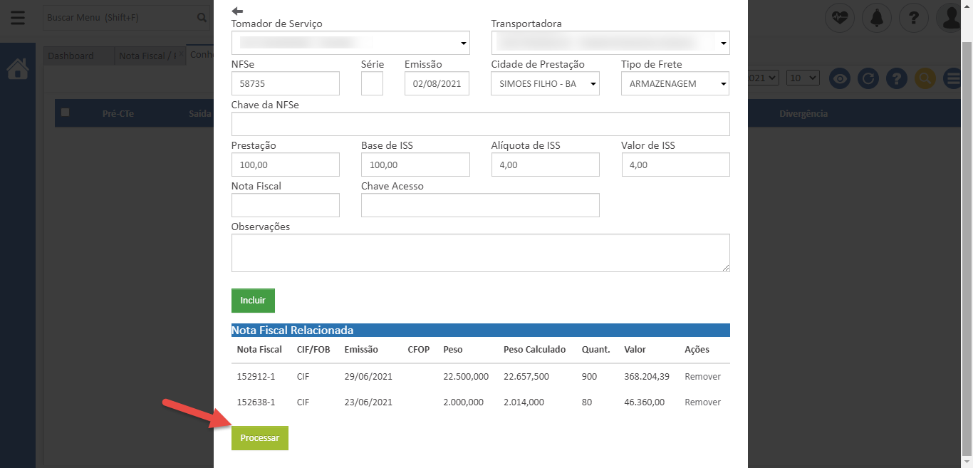 - Repita o mesmo processo para as demais notas, e ao finalizar clique em “Processar”.