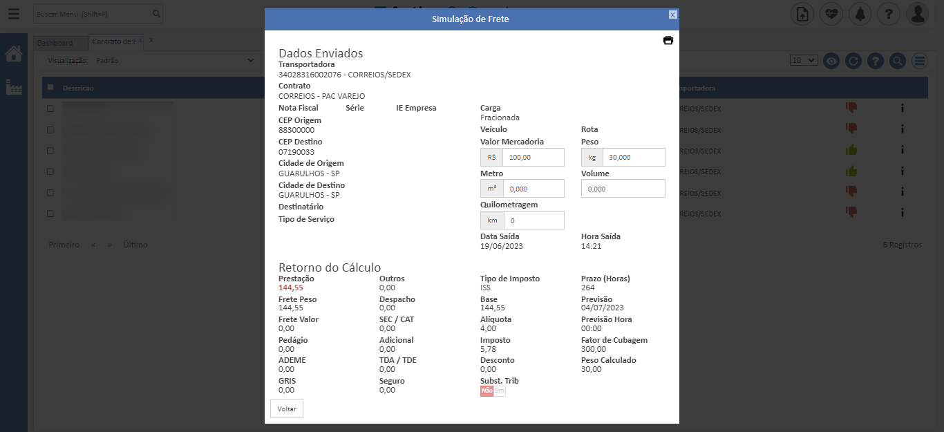 Com a simulação de cálculo de frete do Active OnSupply você consegue verificar com facilidade se o cálculo de frete está sendo realizado corretamente ao utilizar as tabelas cadastradas.