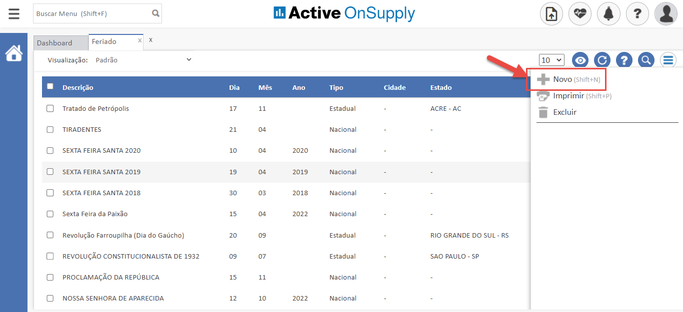 Assim, você otimiza seu tempo e consegue cadastrar diversos feriados com agilidade.