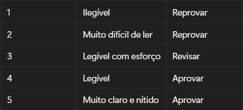 Ao final, o sistema atribui uma nota e um status para cada comprovante, analisando a nitidez, legibilidade e autenticidade das informações.