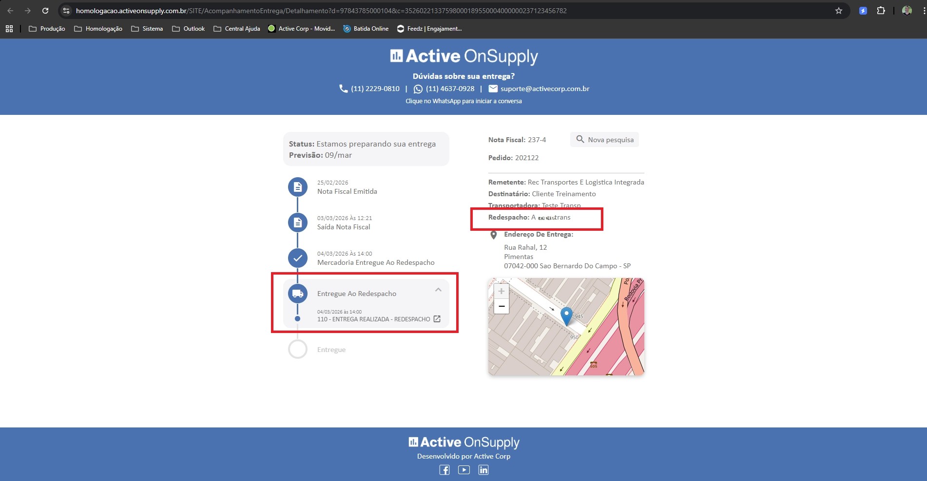 Além disso, agora as observações das ocorrências de entrega realizadas no redespacho passam a mostrar a Razão Social da transportadora responsável pelo redespacho.