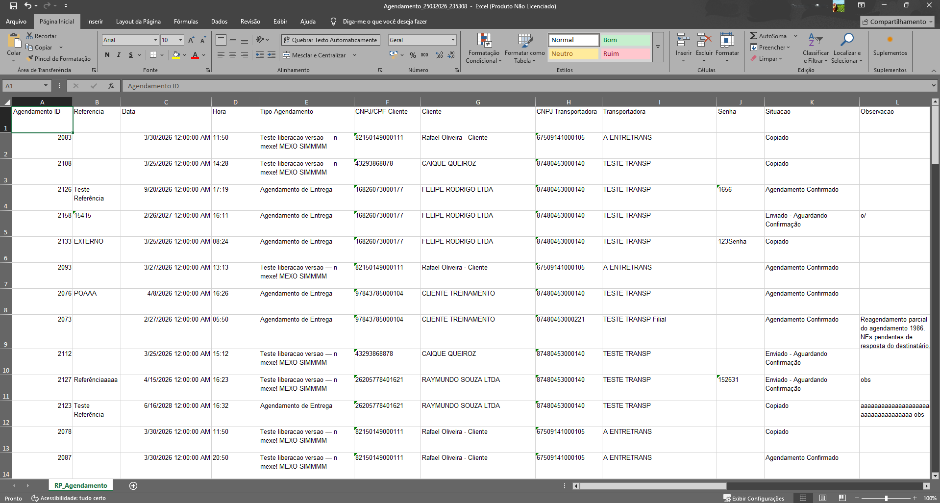 Relatório de Agendamento com indicadores estratégicos