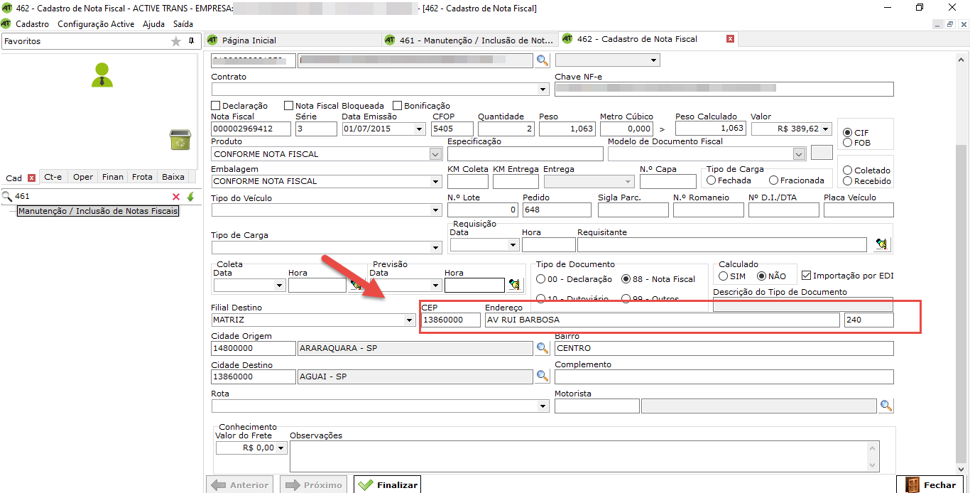 Agora, no Active Trans é possível simplificar todo esse processo através do retorno do local de entrega da nota fiscal nas observações do CT-e.