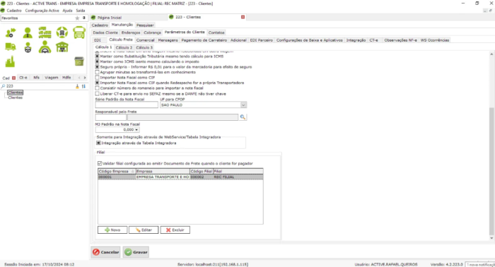 No Active Trans você também consegue realizar essa separação por meio de uma nova configuração para validar se está emitindo o CT-e daquele cliente na filial correta.