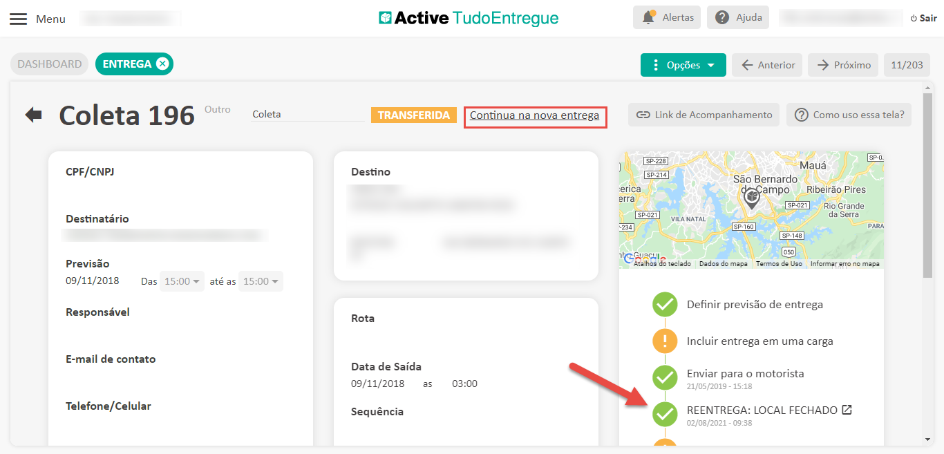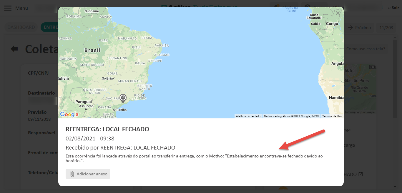 - Acesse a entrega para visualizar o motivo e a ocorrência lançada;