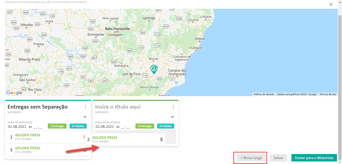 - Além disso, você também pode distribuir as entregas agrupadas pelo Active TudoEntregue para outros motoristas. Basta clicar em “Nova carga” e arrastar a entrega desejada para a nova separação.