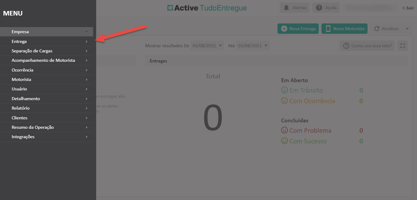 - Acesse a tela “Entrega”;