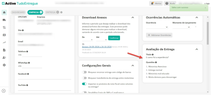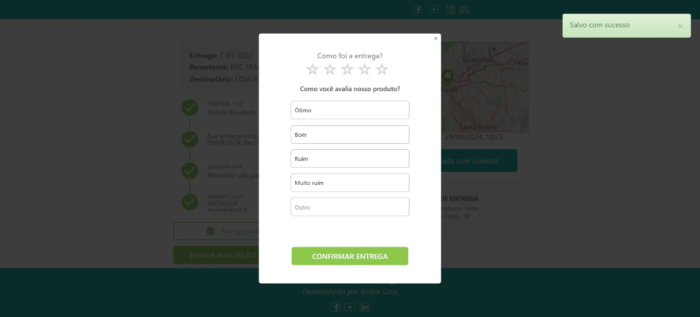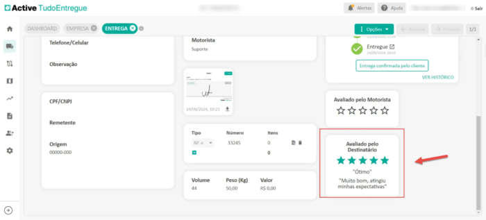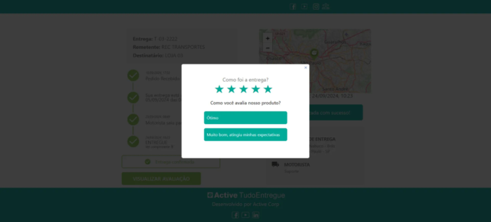 No Active TudoEntregue, sempre que uma entrega ou coleta for finalizada pelo motorista, o destinatário pode avaliar como foi aquele serviço, indicando se de fato recebeu a entrega.