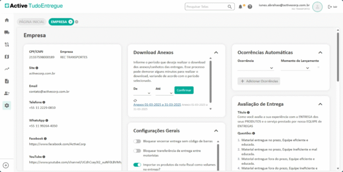 Mais uma melhoria para simplificar seus processos: agora, ao usar a função “Download de Anexos” na tela da empresa, o sistema também inclui os comprovantes de entrega junto com os demais documentos.