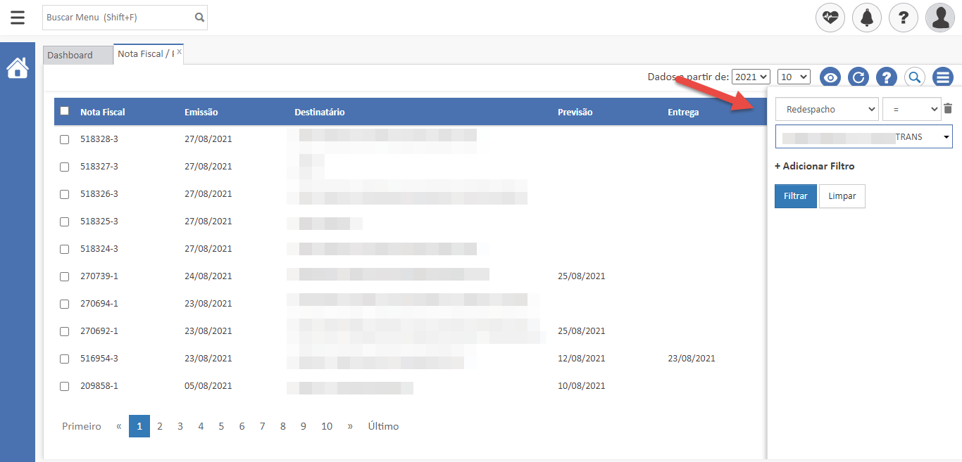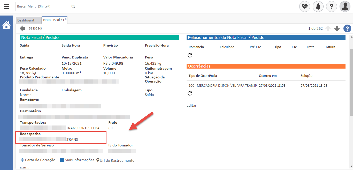Para simplificar sua organização, agora, é possível visualizar na própria Nota Fiscal a transportadora que realizará o segundo trecho do transporte. Além disso, você também pode filtrar na própria tela de “Nota Fiscal / Pedido” e “Romaneio” todas as notas que possuem determinado transportador como redespacho.