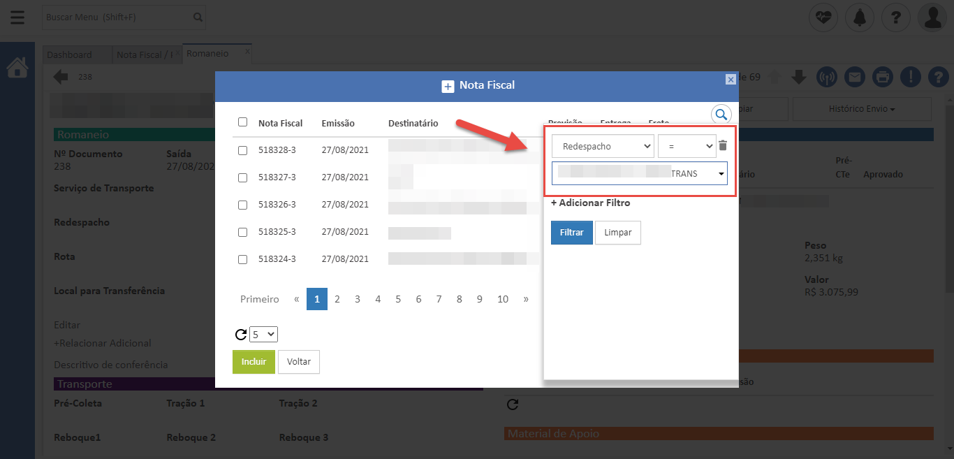 Você também pode realizar o mesmo filtro para localizar as notas desejadas e relacioná-las ao romaneio: