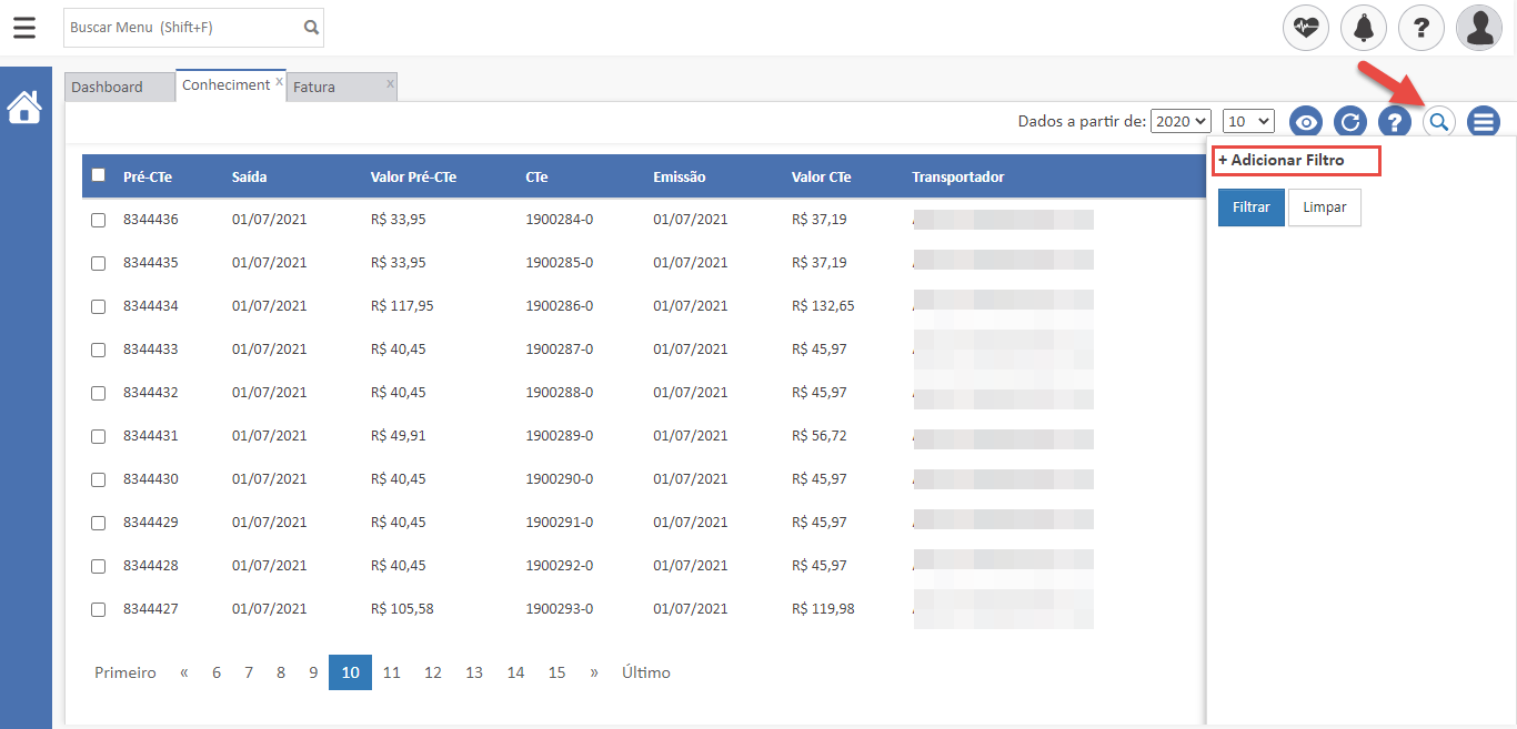 - Após isto, basta filtrar e pronto! Serão apresentados na tela todos os documentos desejados. Assim, você pode identificar com mais facilidade para quais fretes e faturas a transportadora não realizou a cobrança da forma correta.