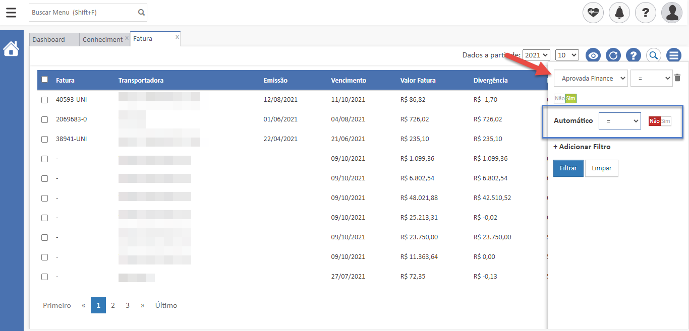 - Saiba quais CT-es e Faturas foram aprovados automaticamente