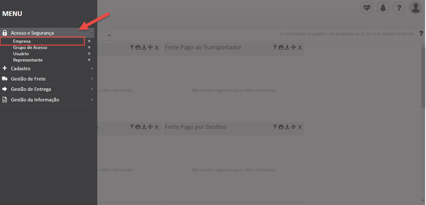 - Acesse a tela “Empresa” no menu “Acesso e Segurança”;