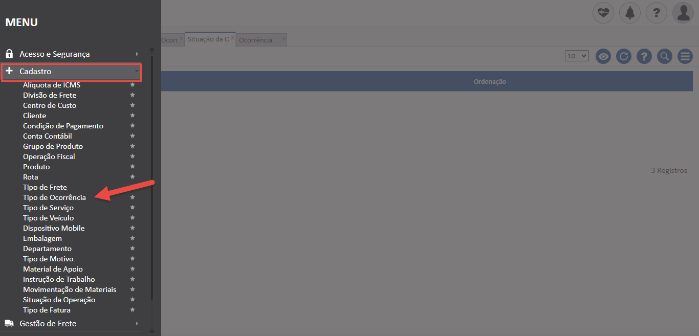 - Para utilizar o recurso, basta acessar a tela “Situação da Operação” no Menu “Cadastro”;