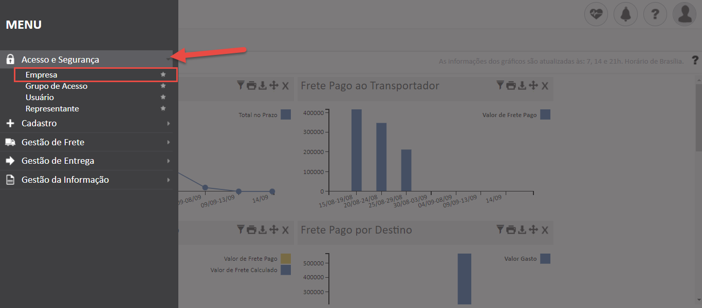 - Para utilizar essa facilidade, acessa a tela “Empresa” no Menu “Acesso e Segurança”;