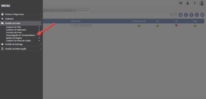 - Acesse a tela “Homologação de Transportadora” e pesquise a transportadora para fazer a configuração.